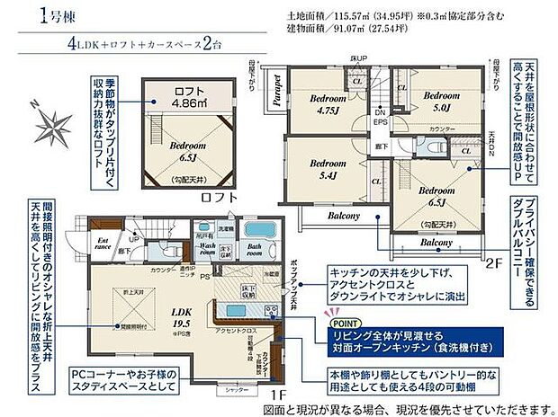 家事がはかどる食洗機付♪広々リビング19帖超!季節物がたっぷり片付くロフトあり。LD部分は折上天井で開放感あり!全居室収納あり!家族との会話が弾む対面キッチン♪再配達に困らない宅配ボックス付!