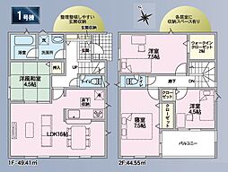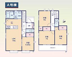 | 間取り | 3LDK(+タタミコーナー+ウォークインクローク) 間取り内訳:リビングダイニングキッチン 21.5帖(1階)・洋室 7.5帖(2階)・洋室 5.2帖(2階)・洋室 5帖(2階) |