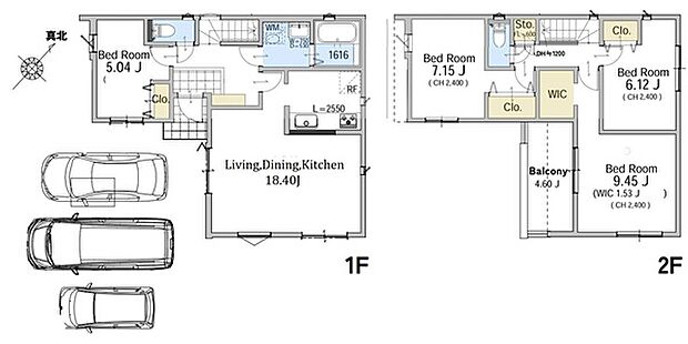 東南×南西角地!18畳の1階LDKを採用。お車3台を並列にて駐車可能です!