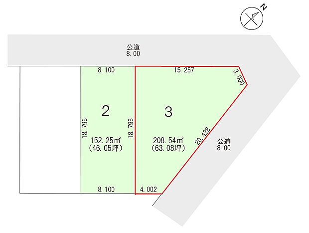 | 土地面積 | 152.25m2(46.05坪)・208.54m2(63.08坪) | ||