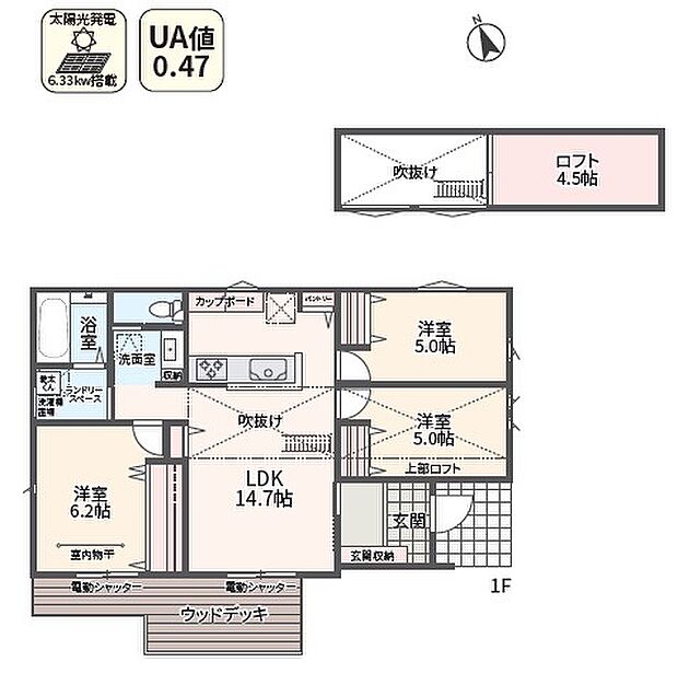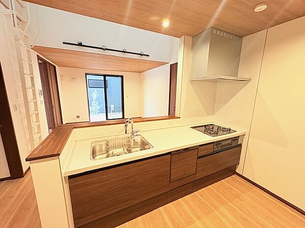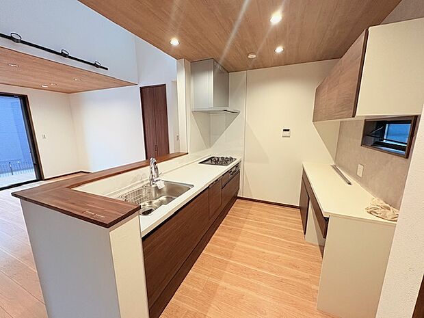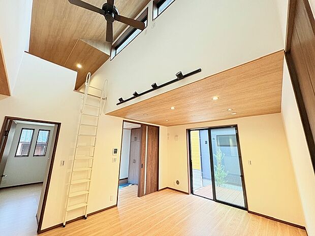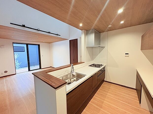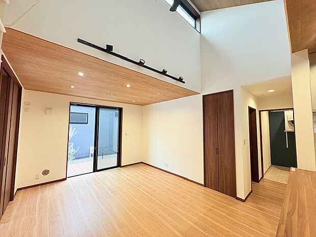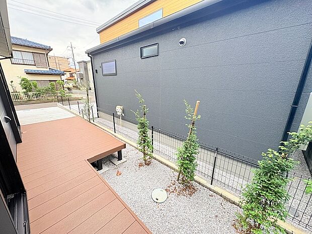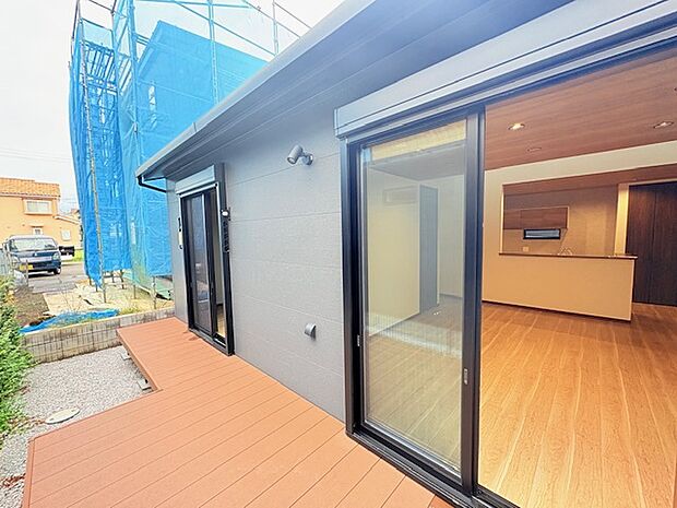☆やさしい光と風に包まれる、ゆったり平屋の新築邸宅☆リビングから続くウッドデッキで、外と内がひとつになる住まい☆乾太くん完備のランドリースペースあり 雨の日のお洗濯も快適です♪