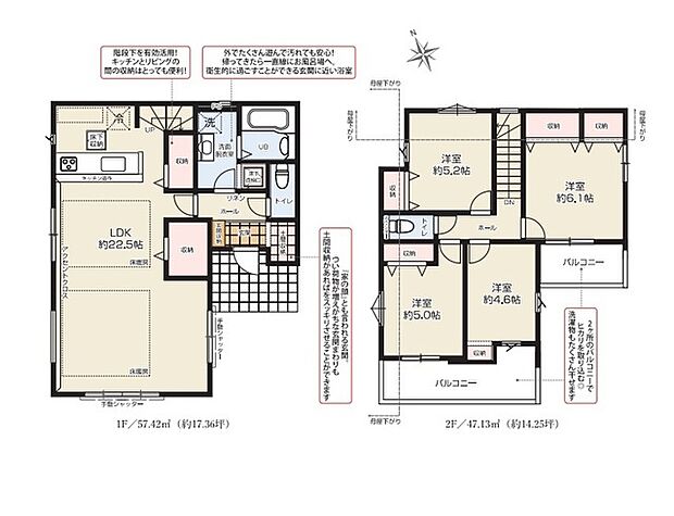 | 間取り | 4LDK 間取り内訳:リビングダイニングキッチン 22.5帖・洋室 6.1帖・洋室 5.2帖・洋室 5帖・洋室 4.6帖 |