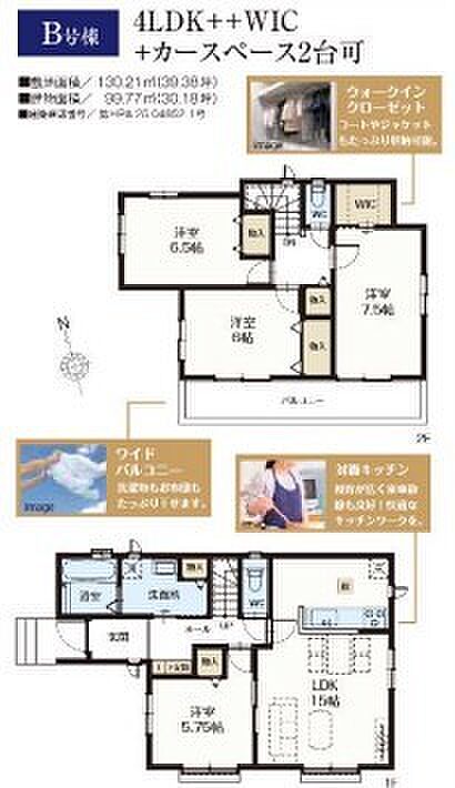 | 間取り | 4LDK 間取り内訳:リビングダイニングキッチン 15帖・洋室 7.5帖・洋室 6帖・洋室 6帖・洋室 5.7帖 |