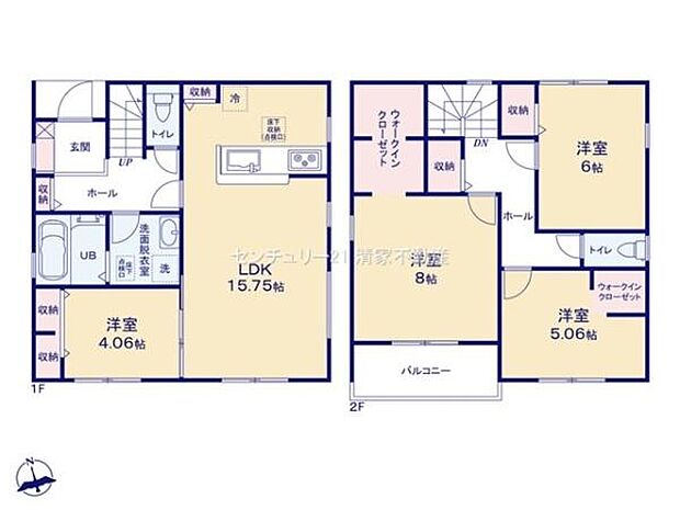 | 間取り | 4LDK 間取り内訳:リビングダイニングキッチン 15.7帖(1階)・洋室 4帖(1階)・洋室 8帖(2階)・洋室 6帖(2階)・洋室 5帖(2階) |