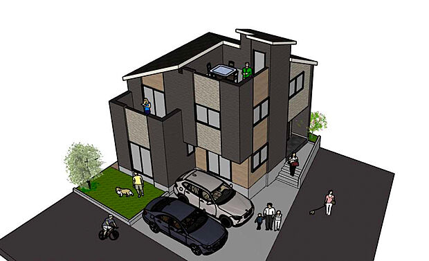 駐車スペース2台可(車種による) 広々としたルーフバルコニー付き 浴室乾燥機付きバスルーム 食洗機付きシステムキッチン 玄関タッチキーシステム ダブルボウル洗面台 宅配ボックス付きポスト