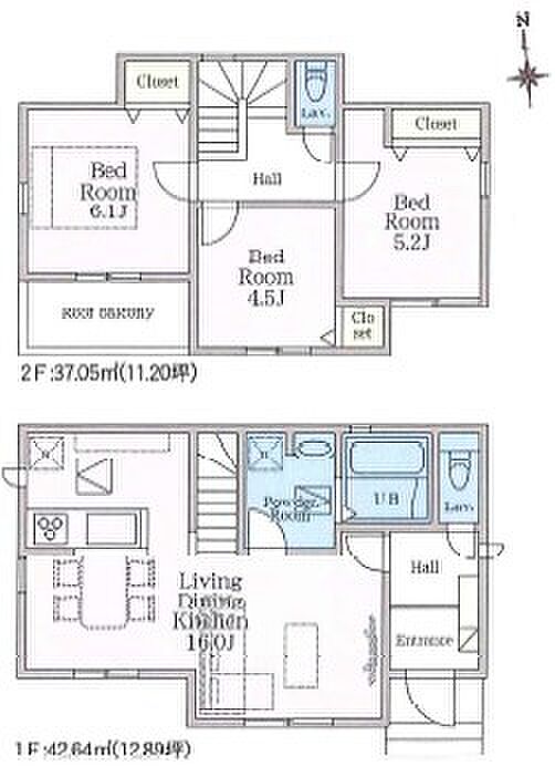 | 間取り | 3LDK 間取り内訳:リビングダイニングキッチン 16帖(1階)・洋室 6.1帖(2階)・洋室 5.2帖(2階)・洋室 4.5帖(2階) |