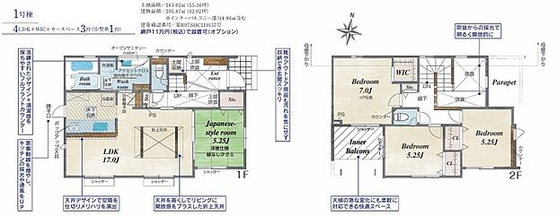 • 「建築条件付き土地」の「建物プラン例」は、土地購入者の設計プランの一例であり、プランの採用可否は任意です。