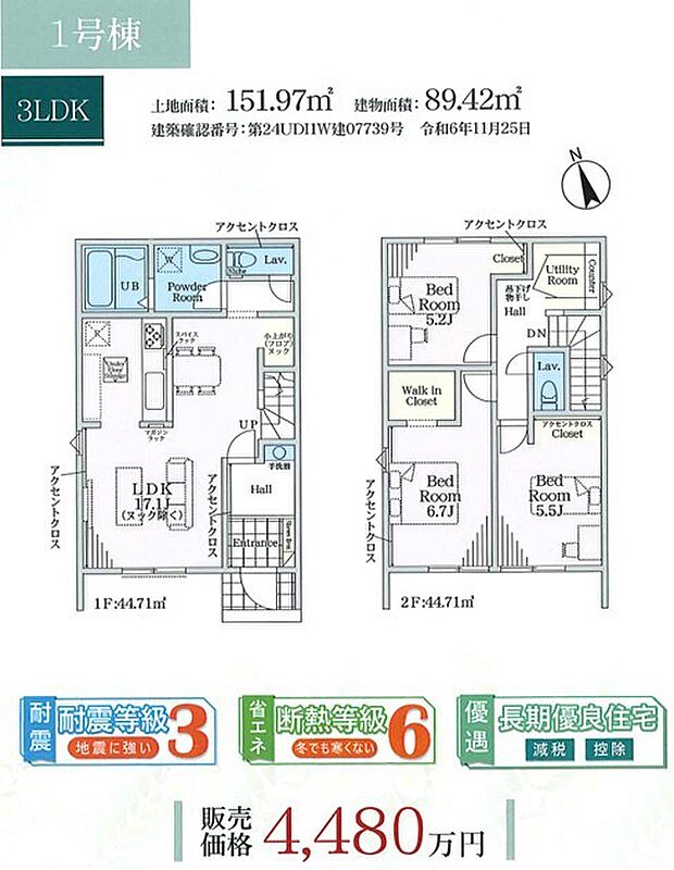 長期優良住宅・断熱等級6・耐震等級3『設計・建設』住宅性能評価書ダブル取得♪地震に強い家!