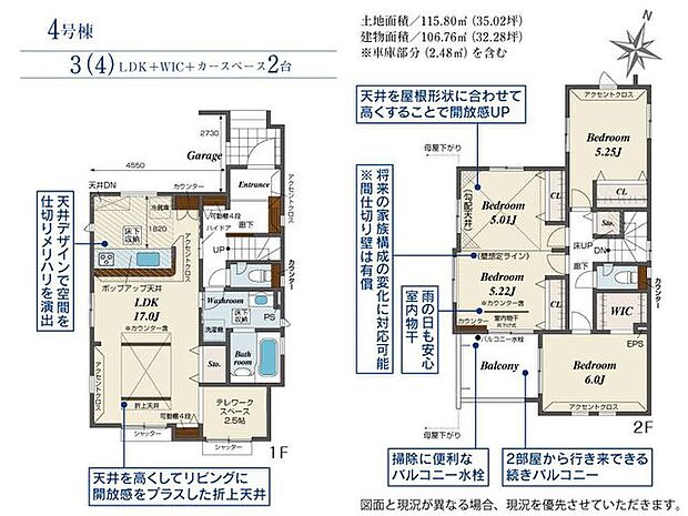 間取り内訳:リビングダイニングキッチン 16.5帖(1階)・洋室 11帖(2階)・洋室 55.2帖(2階)・洋室 6.5帖(2階)