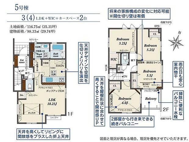 | 間取り | 3LDK 間取り内訳:リビングダイニングキッチン 18.2帖(1階)・洋室 10.7帖(2階)・洋室 6帖(2階)・洋室 5.2帖(2階) |