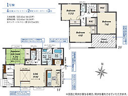 | 間取り | 5LDK 間取り内訳:リビングダイニングキッチン 19.5帖(1階)・和室 4.2畳(1階)・洋室 7帖(2階)・洋室 5.7帖(2階)・洋室 5.4帖(2階)・洋室 5帖(2階) |