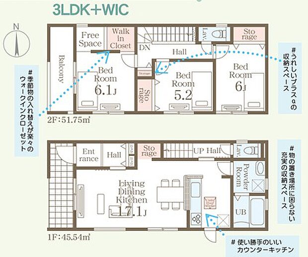 | 間取り | 3LDK 間取り内訳:リビングダイニングキッチン 17.1帖(1階)・洋室 6帖(2階)・洋室 6帖(2階)・洋室 5.2帖(2階) |