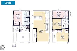 | 間取り | 2SLDK 間取り内訳:リビングダイニングキッチン 18.1帖(2階)・洋室 7.2帖(3階)・洋室 5.3帖(3階)・収納 4.8帖(1階)・収納 4.6帖(1階) |