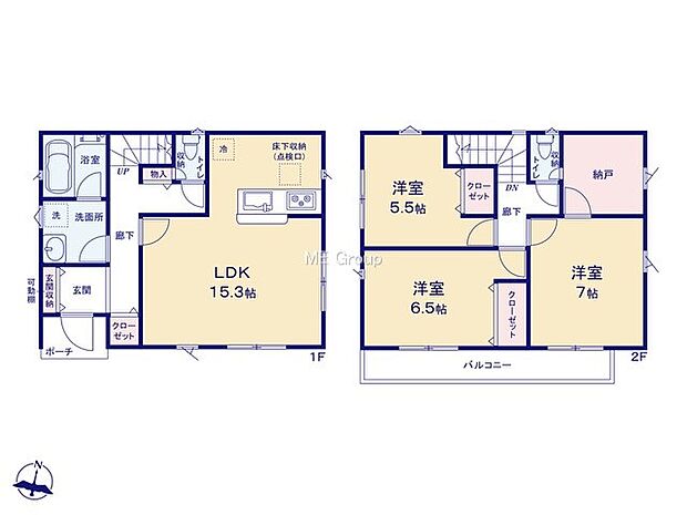 • 「建築条件付き土地」の「建物プラン例」は、土地購入者の設計プランの一例であり、プランの採用可否は任意です。