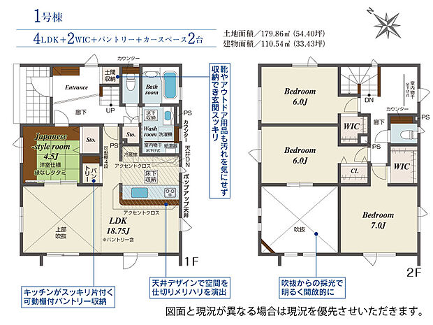 | 建物面積 | 110.54m2(約33.43坪)~115.93m2(約35.06坪) | ||