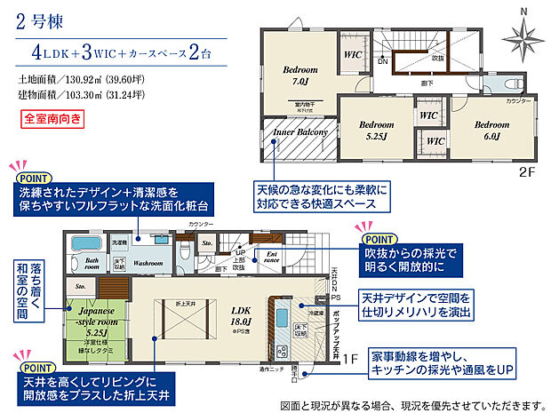 | 建物面積 | 103.30m2(約31.24坪)~107.79m2(約32.60坪) | ||