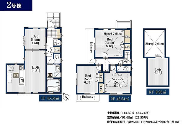 | 建物面積 | 91.08m2・91.38m2 | ||