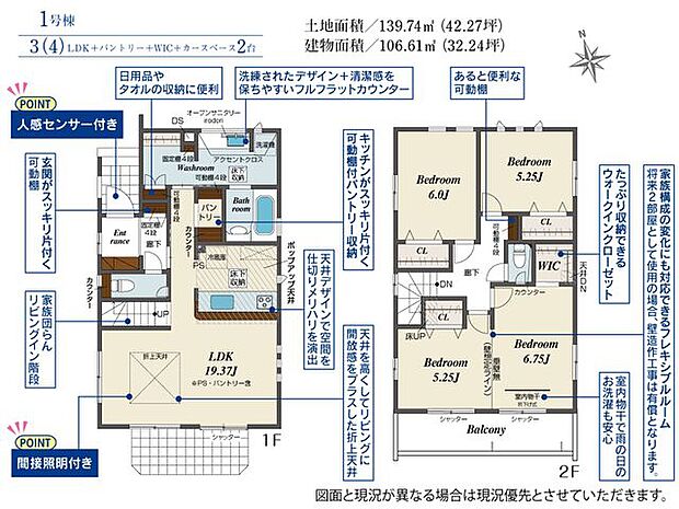 \全2棟分譲/ZEH水準の省エネ住宅! 両棟敷地面積42坪ございます! ご家族の人数や用途に合わせて4LDKに変更も可能! 住みやすさにこだわった間取り設計♪ 耐震と制震を兼ね備えた地震に強いお家!