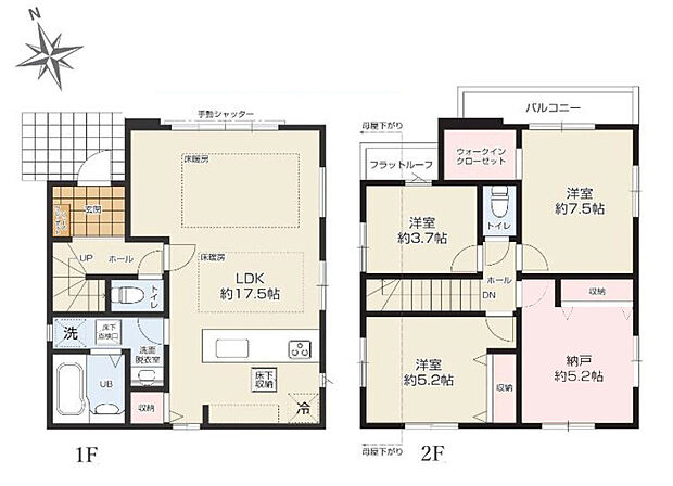 LDKが広く、リビングスペース、ダイニングスペース、キッチンスペースをしっかりと確保。ゆったりとした空間でご家族団らんの時をお過ごしください。 食器洗い乾燥機・床暖房・浴室乾燥機・浄水器を標準装備。あったら嬉しい家事をサポートする設備が満載です! カースペースは2台分確保。急な来客にも対応できます。普段は自転車やバイクなどの置き場として大活躍。