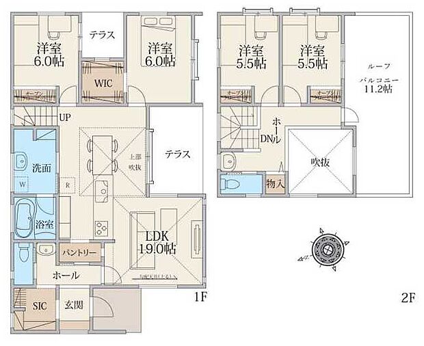 WICやSIC等の豊富な収納スペースで広々した印象のお部屋に。勾配天井が空間に余裕を与え、のびのび&寛ぎ空間を演出します。 家にいながらアウトドア気分になれるテラスやルーフバルコニーあり。吹抜けによるたっぷりの自然光や風を感じられる日常を送れます。 京成線「東中山」駅 徒歩13分の好立地。天空の家スカイバルコニーはBBQやホームパーティー、お子様のプールや趣味の空間としても活用できます。疲れを癒すハンモックを置いて寛ぐのも素敵ですね。