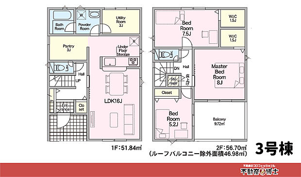• 「土地(建築条件なし)」の「建物プラン例」に関して、そのプラン例は特定の建築請負会社によるもので、当該建築請負会社以外で建てた場合、同様のものが同価格で建てられるとは限りません。また、建築請負会社を特定するものではありません。