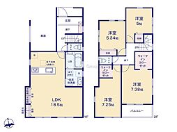 間取り内訳:リビングダイニングキッチン 18帖(1階)・洋室 5.2帖(2階)x2・洋室 7.5帖(2階)・洋室 5.1帖(2階)