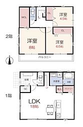 間取り内訳:リビングダイニングキッチン 16帖(1階)・和室 4畳(1階)・洋室 8帖(2階)・洋室 6.5帖(2階)・洋室 4.5帖(2階)