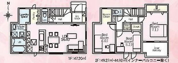 | 間取り | 3LDK 間取り内訳:リビングダイニングキッチン 16帖・洋室 7.1帖・洋室 6帖・洋室 5.2帖 |