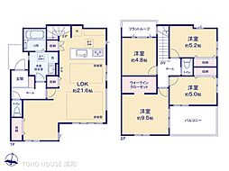 | 間取り | 3LDK 間取り内訳:洋室 6帖(2階)・洋室 5帖(2階)・洋室 5.3帖(2階)・リビングダイニングキッチン 15帖(1階) |