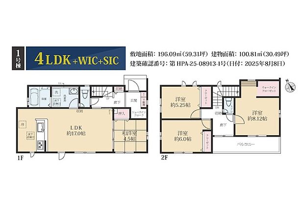 | 間取り | 4LDK 間取り内訳:リビングダイニングキッチン 17帖・和室 4.5畳・洋室 8.1帖・洋室 6帖・洋室 5.2帖 |