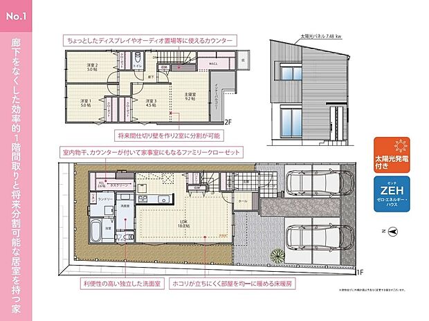 ●日高小学校まで徒歩2分、刈谷東中学校まで徒歩10分とお子様の通学も安心のエリア! ●ルビットタウン刈谷まで徒歩10分!食料品だけでなく衣類や生活雑貨なども揃います ●18帖のゆとりあるリビング空間で家族団らんの時間を過ごすことができます ●床暖房付き ホコリが立ちにくく、お部屋全体を均一に暖めてくれます ●土間収納やファミリークローゼット、パントリー、WICLなど各所に収納が充実した間取りプラン ●家族構成や暮らし方の変化に合わせ、将来的に分割することが可能な可変型間取り
