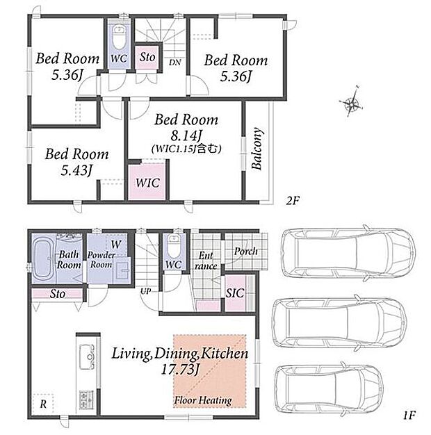 LDKは対面式キッチン、床暖房採用。カースペース付き新築分譲住宅です。