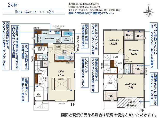 | 建物面積 | 102.68m2(約31.06坪)~106.43m2(約32.19坪) | ||