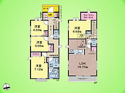 | 間取り | 4LDK 間取り内訳:リビングダイニングキッチン 16帖(1階)・和室 6畳(1階)・洋室 6帖(2階)・洋室 6帖(2階)・洋室 8帖(2階) |