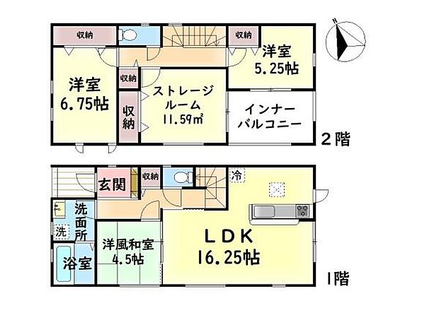 | 間取り | 3SLDK 間取り内訳:リビングダイニングキッチン 16.2帖(1階)・和室 4.5畳(1階)・洋室 6.7帖(2階)・洋室 5.2帖(2階) |