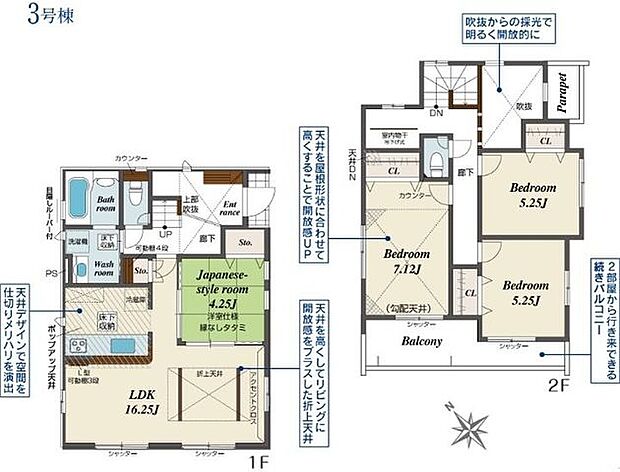 • 「建築条件付き土地」の「建物プラン例」は、土地購入者の設計プランの一例であり、プランの採用可否は任意です。