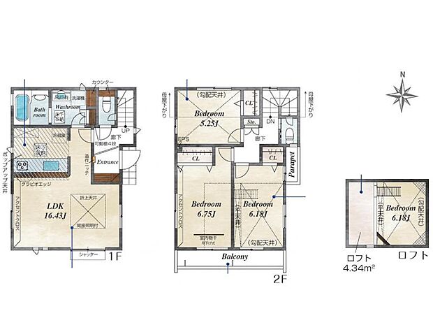 • 「建築条件付き土地」の「建物プラン例」は、土地購入者の設計プランの一例であり、プランの採用可否は任意です。