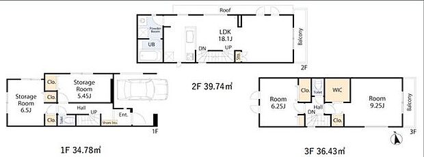 | 間取り | 4LDK 間取り内訳:洋室 5.4帖(1階)・洋室 6.5帖(1階)・リビングダイニングキッチン 18.1帖(2階)・洋室 6.2帖(3階)・洋室 9.2帖(3階) |