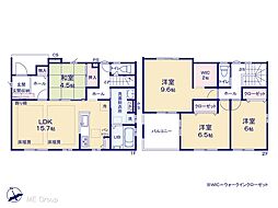 | 間取り | 4LDK 間取り内訳:リビングダイニングキッチン 15.7帖(1階)・和室 4.5畳(1階)・洋室 9.6帖(2階)・洋室 6.5帖(2階)・洋室 6帖(2階)・収納 3.8帖(2階) |