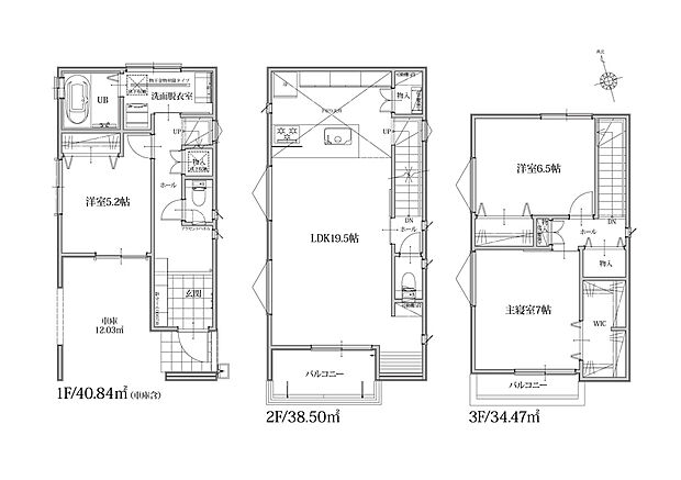 間取り 3LDK 建物階 木造3階建て
