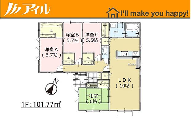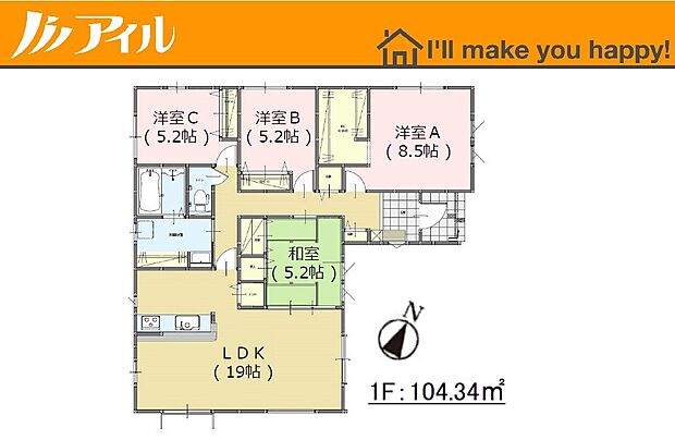 | 建物面積 | 101.02m2~104.34m2 | ||