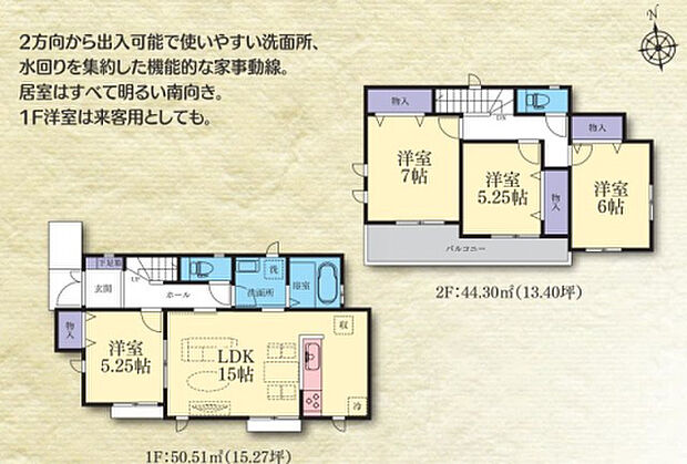 • 【脱衣場】多くの戸建て住宅で見かける洗面脱衣所は、洗面台と洗濯機が2畳ほどのスペースに並べられていて、洗面所が脱衣所を兼ね備えている間取りが一般的です。お客様が利用することもある、パブリックな空間でもあります。