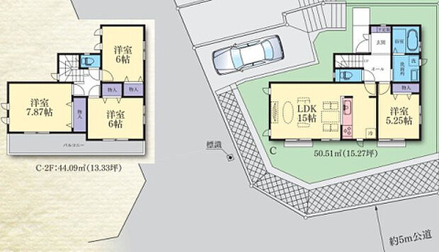 • 「建築条件付き土地」の「建物プラン例」は、土地購入者の設計プランの一例であり、プランの採用可否は任意です。