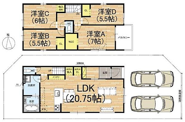 • 「建築条件付き土地」の「建物プラン例」は、土地購入者の設計プランの一例であり、プランの採用可否は任意です。