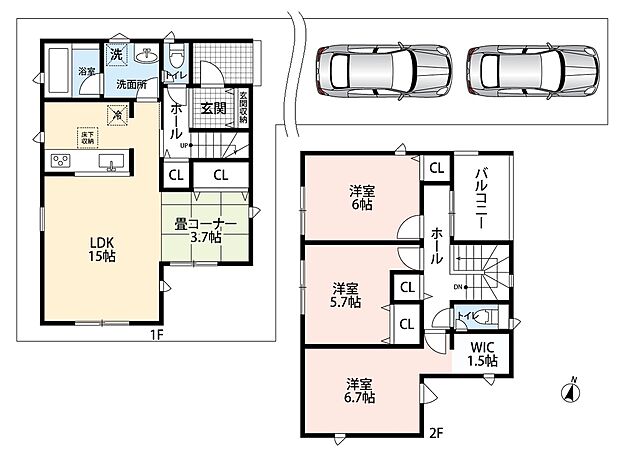 間取り 3LDK~4LDK+S(納戸) 建物階 木造2階建(軸組工法)