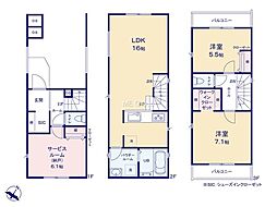 | 間取り | 2SLDK 間取り内訳:収納 6.1帖(1階)・リビングダイニングキッチン 16帖(2階)・洋室 5.5帖(3階)・洋室 7.1帖(3階) |