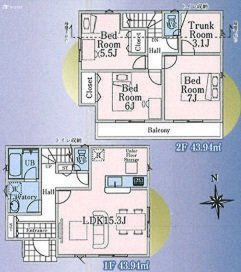 | 間取り | 3LDK 間取り内訳:リビングダイニングキッチン 15.3帖(1階)・洋室 7帖(2階)・洋室 6帖(2階)・洋室 5.5帖(2階) |