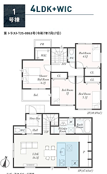 | 間取り | 4LDK 間取り内訳:洋室 5.3帖(2階)・洋室 5帖(2階)・洋室 6.1帖(2階)・洋室 4.5帖(2階)・リビングダイニングキッチン 16.3帖(1階) |
