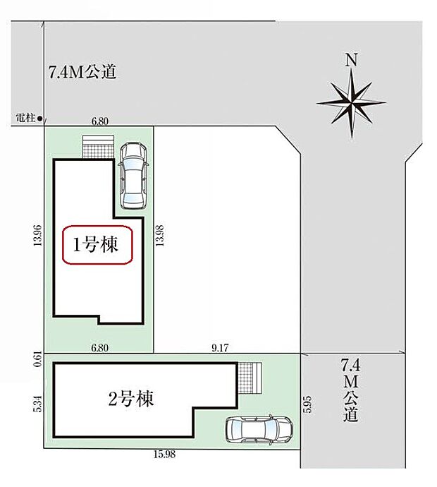 • 北 (公道 幅員 7.40m 接面 6.80m)