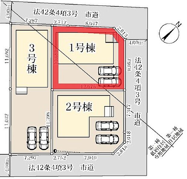 • 北西 (公道 幅員 4.00m 接面 10.70m)